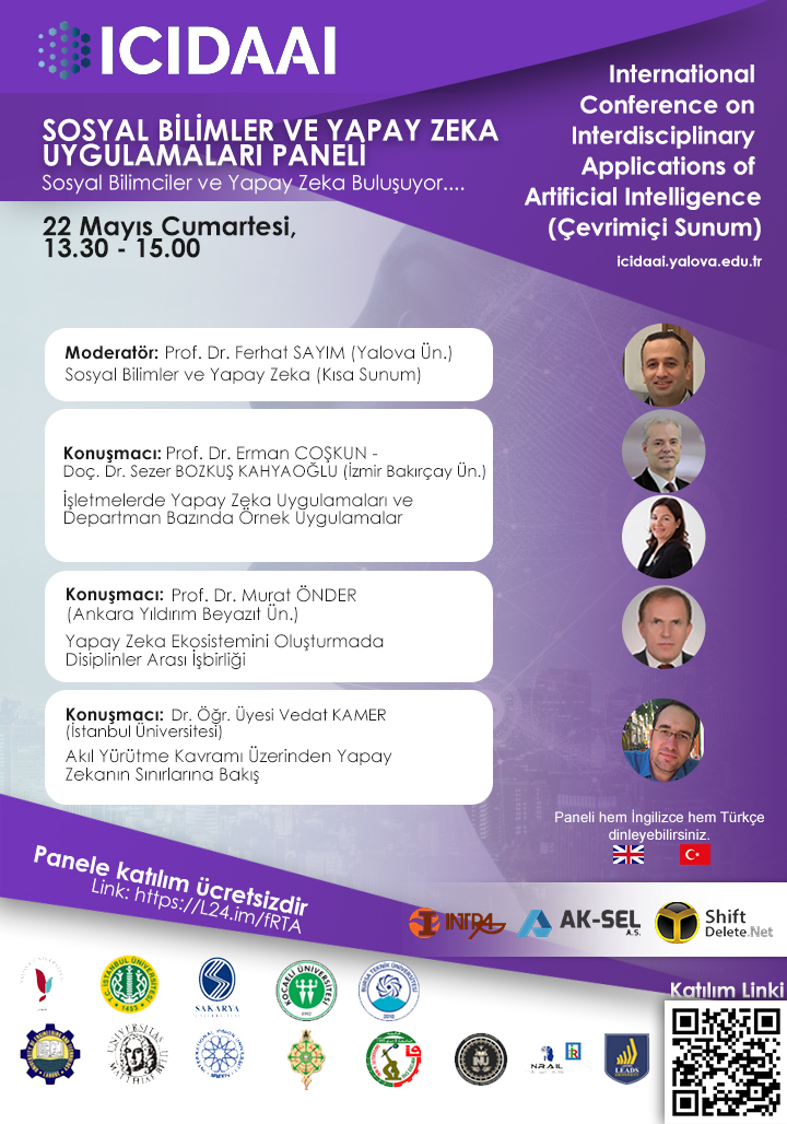 Yalova Üniversitesi, İstanbul Üniversitesi, Sakarya Üniversitesi, Kocaeli Üniversitesi, Bursa Teknik Üniversitesi, UET Lahore Üniversitesi, Matej Bel Üniversitesi, Uluslararası Vizyon Üniversitesi, Tlemcen Üniversitesi, Universite 8 Mai 1945 Guelma, IQRA National University, Bulgarian Academy of Science ve Lahore Leads Üniversitesi iş birliği ile düzenlenen Uluslararası Yapay Zekâ Uygulamaları Konferansı, konu ile ilgili sağlık, fen ve sosyal bilimler alanlarındaki çalışmaları bir araya getirecek.