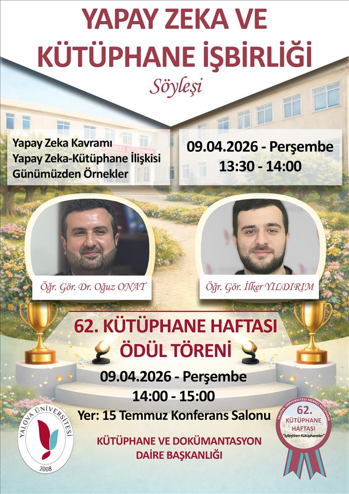 Yalova Üniversitesi 62. Kütüphane Haftası kapsamında heyecan verici bir buluşmaya davetlisiniz!