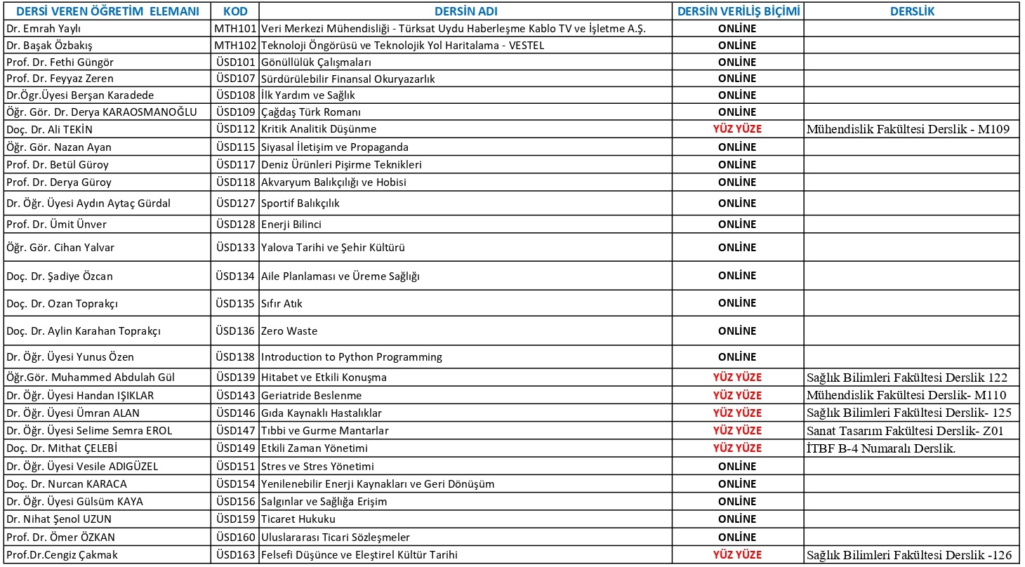 Üniversitemizde güz dönemi kapsamında açılan seçmeli dersler aşağıda listelenmiştir.