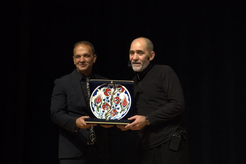 Öğrencilerin yoğun ilgi gösterdiği programın sonunda Rektör Yardımcımız Prof. Dr. Taner Tatar ve İl Emniyet Müdürü Vekili Cemil Kocabaş tarafından Ahmet Sula’ya hediye takdim edildi.