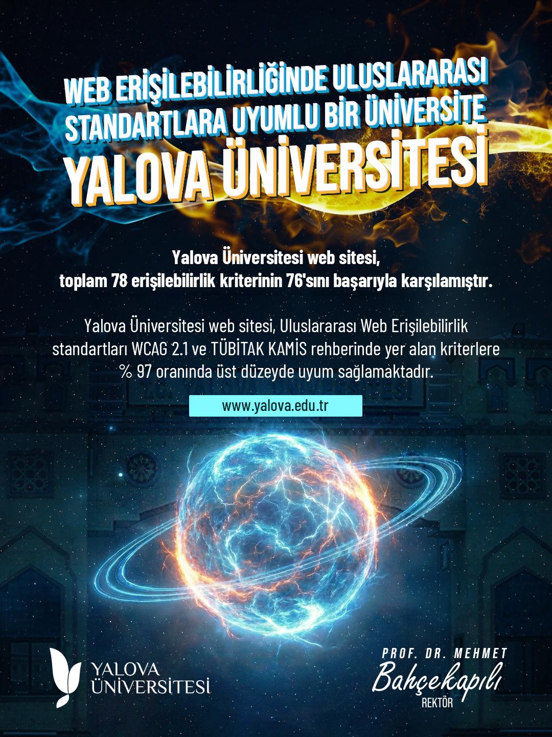 Üniversite, yalnızca zorunlu standartlarla yetinmeyerek en üst erişilebilirlik seviyesi olan AAA Düzeyi kriterlerde de önemli bir başarı elde etti. 28 ileri düzey kriterden 27’sinin karşılanmış olması, Yalova Üniversitesi’ni dijital erişilebilirlik alanında yükseköğretim kurumları arasında “rol model” konumuna taşıdı.