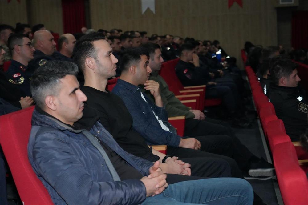 Öğrencilerin yoğun ilgi gösterdiği programın sonunda Rektör Yardımcımız Prof. Dr. Taner Tatar ve İl Emniyet Müdürü Vekili Cemil Kocabaş tarafından Ahmet Sula’ya hediye takdim edildi.