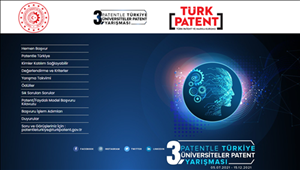 Türk Patent ve Marka Kurumu tarafından bu yıl 3. defa düzenlenecek olan, üniversitelerin ön lisans, lisans, yüksek lisans ve doktora programlarında öğrenim gören üniversite öğrencilerine yönelik patent yarışması başlıyor. Yarışmaya katılmak isteyen öğrencilerimiz, 15.12.2021 tarihine kadar aşağıda yer alan link üzerinden başvurularını gerçekleştirebilirler.