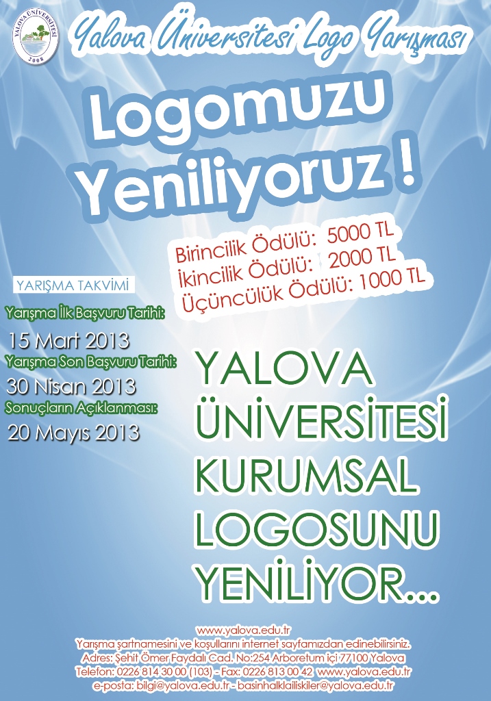 1) Yarışmanın Adı: Yalova Üniversitesi ödüllü logo tasarım yarışması,