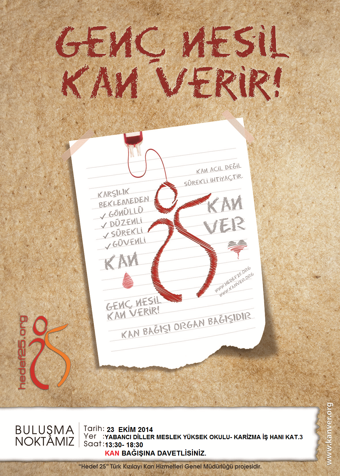 KAN ACİL DEĞİL SÜREKLİ İHTİYAÇTIR... ÜNİVERSİTEMİZ SAFRAN YERLEŞKEMİZDE 21-22 EKİM 2014... YABANCI DİLLER YÜKSEKOKULUMUZDA 23 EKİM 2014 TARİHİNDE DÜZENLENECEK OLAN KAN BAĞIŞI KAMPANYALARINA DESTEK OLALIM....
