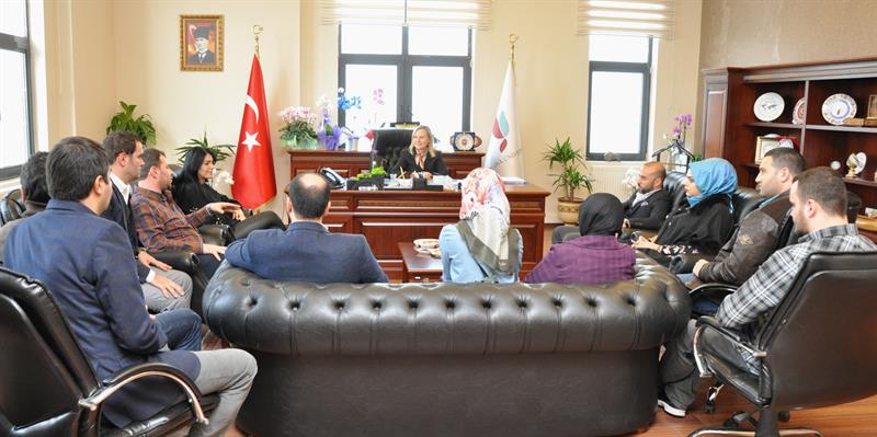 Ak Parti Yalova Merkez İlçe Başkanı Umut Güçlü ve beraberindeki heyet Rektörümüz Prof. Dr. Güler Alkan’ı makamında ziyaret etti. Yalova Üniversitesi’ne Rektör Vekili olarak atanmaları dolayısıyla Prof. Dr. Güler Alkan’ı tebrik eden Başkan Umut Güçlü Rektör Alkan’a görevinde başarılar diledi. Rektör Prof. Dr. Güler Alkan’da ziyaretlerinden dolayı Ak Parti Yalova Merkez İlçe Başkanı Umut Güçlü ve beraberindeki heyete teşekkür ederek siyasi faaliyetlerinde başarılar diledi. Yapılan görüşmenin ardından ziyaretini tamamlayan Ak Parti Merkez İlçe Başkanlığı heyeti üniversitemizden ayrıldı.