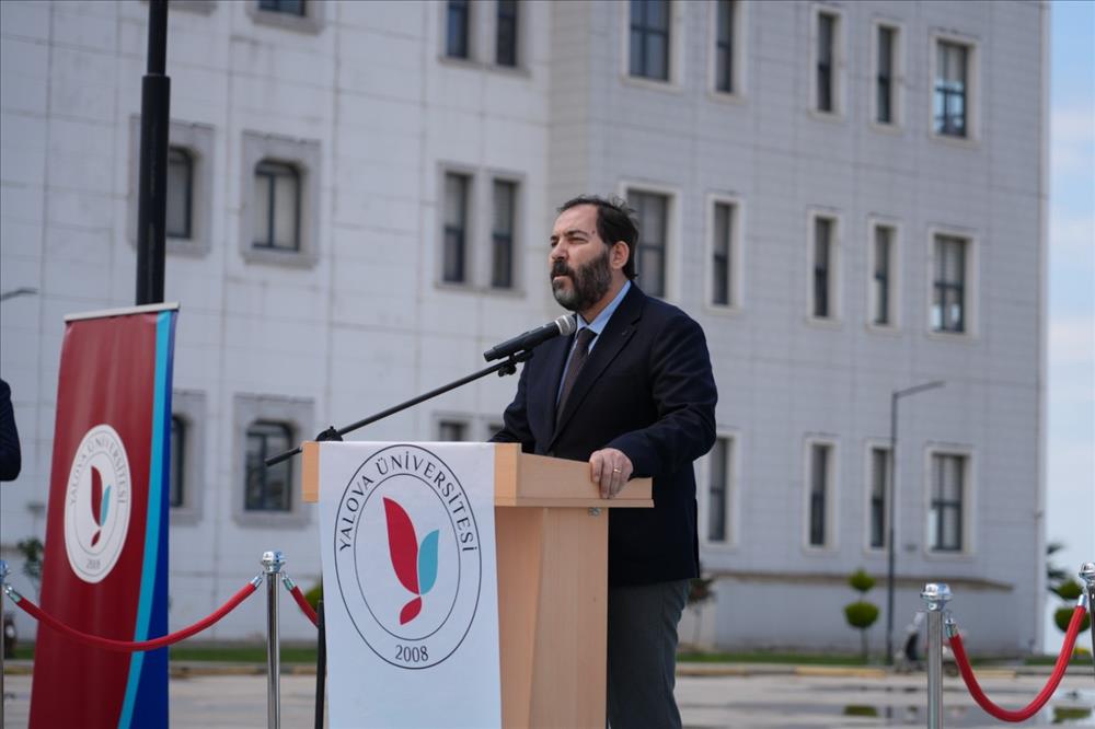 Bağımsızlığımızın nişanesi al bayrağımız; Rektörümüz Sayın Prof. Dr. Mehmet Bahçekapılı ve Yalova Valimiz Sayın Dr. Ahmet Hamdi Usta’nın teşrifleriyle; Garnizon Komutanımız Sayın Mehmet Tahir Göncüoğlu, İl Genel Meclis Başkanımız Sayın Hasan Soygüzel, AK Parti İl Başkanı Sayın Umut Güçlü, MHP İl Başkanı Sayın Ahmet İhsan Güldoğan, Rektör Yardımcılarımız, Genel sekreterimiz, Daire Başkanlarımız ve Şube Müdürlerimizin katılımıyla gerçekleştirilen törenle göndere çekildi.