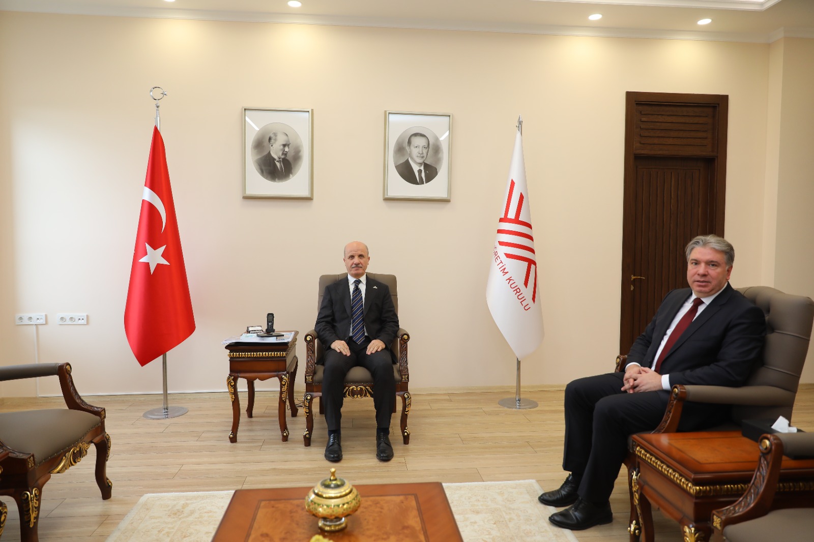 Üniversitemiz Rektörü Prof. Dr. Mehmet Bahçekapılı, Yükseköğretim Kurulu (YÖK) Başkanımız, Prof. Dr. Erol Özvar’ı makamında ziyaret etti.