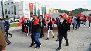 29 Ekim Cumhuriyet Bayramı etkinliği, protokol ve öğrencilerin katılımıyla Merkez Yerleşke giriş kapısı önünden Cumhuriyet Yürüyüşü ile başladı. Kortej yürüyüşü bayraklarla coşkulu marşlar söylenerek Öğrenci Yaşam Merkezi’ne kadar devam etti.